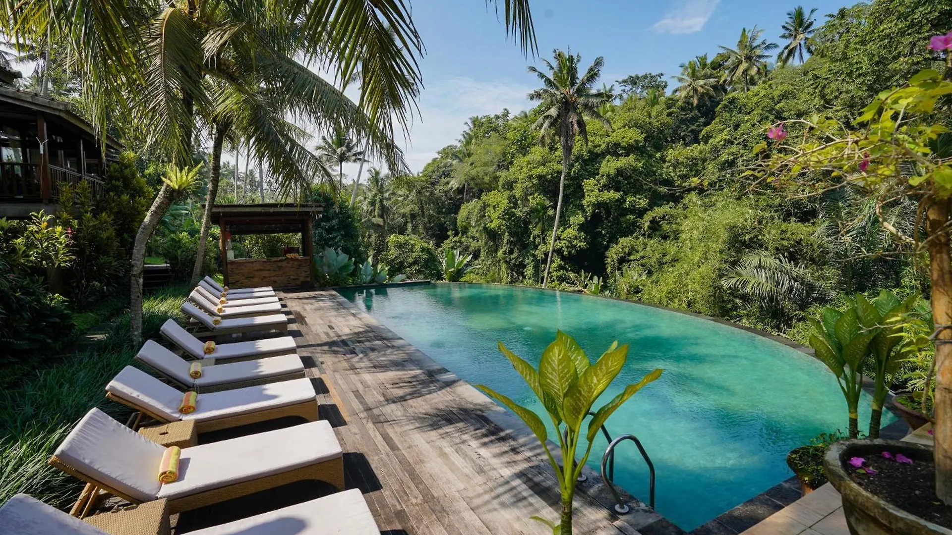 Hemos disfrutado un montón del hotel y Ubud, pasamos 4 noches tranquilos allí. El hotel estaba justo al lado de lugares turísticos, de las calles principales, del centro gracias a su ubicación perfecta. Unas vistas fantásticas al jardín, un personal brillantemente servicial. El desayuno buffet tipo bufé que ofrecieron estaba incluido. Había una piscina fantástica en el lugar.
